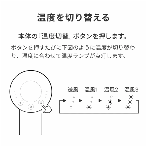 温度設定:4段階(送風/温風1/温風2/温風3)